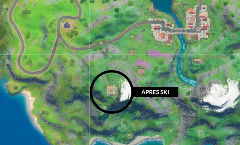 El esquí Apres se encuentra al suroeste de Misty Meadows en la zona de las montañas. No está en la cima, sino debajo de la parte principal nevada hacia el oeste. Puede encontrarlo en E8 si desea utilizar coordenadas. Entra al albergue y encontrarás una pista de baile frente a una cabina de dj en la que puedes bailar. Elige tu baile de emoticones favorito y haz un movimiento durante 10 segundos en total para completar el desafío.