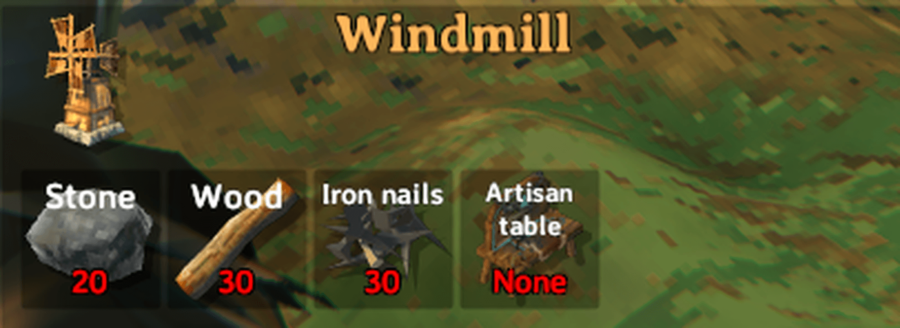 Una vez que obtenga los recursos enumerados anteriormente, puede colocar un molino de viento haciendo clic con el botón derecho en un martillo y encontrándolo debajo de la pestaña de creación.